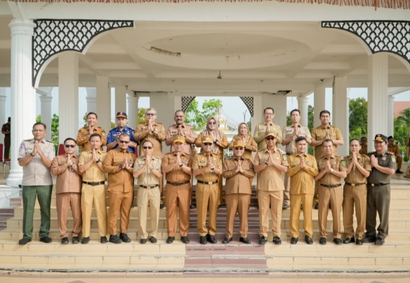 Pemerintah Kabupaten Rokan Hilir menggelar Apel Bersama dan Halal Bihalal di Taman Budaya Batu 6, Bagansiapiapi, pada hari Senin (30/3/2026). Acara ini dihadiri oleh Bupati Rokan Hilir H. Bistamam, Wakil Bupati Jhony Charles, Sekda Fauzi Efrizal, Sekwan Budi Fitriadi, para asisten, staf ahli, serta seluruh jajaran Kepala OPD dan ASN di lingkungan Pemkab Rokan Hilir.