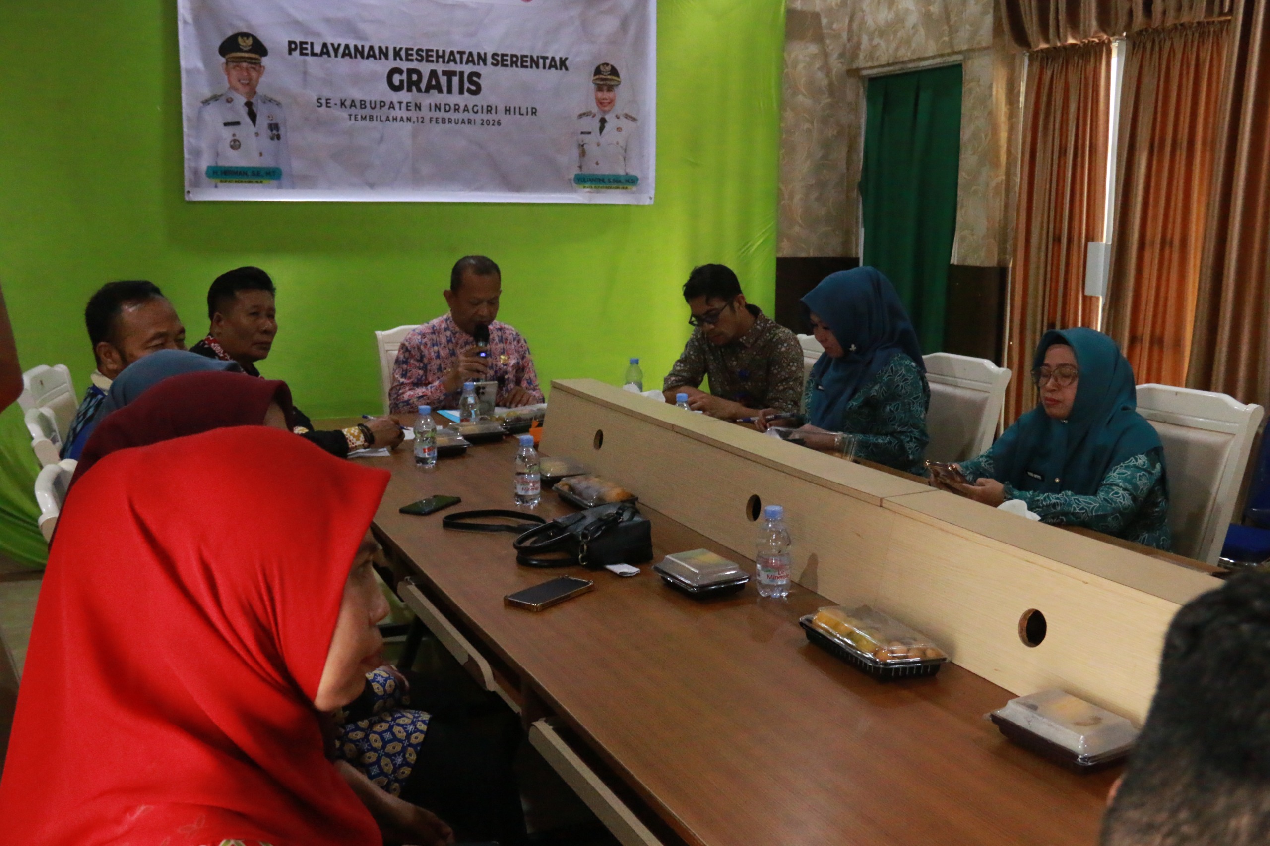 Bupati Indragiri Hilir, H. Herman, S.E., M.T., mengikuti pelaksanaan Pelayanan Keluarga Berencana (KB) dan Pelayanan Kesehatan Serentak melalui video conference dari Pekanbaru, Kamis (12/2/2026). Kegiatan ini diikuti secara virtual oleh para Camat serta Ketua Tim Penggerak PKK se-Kabupaten Indragiri Hilir.