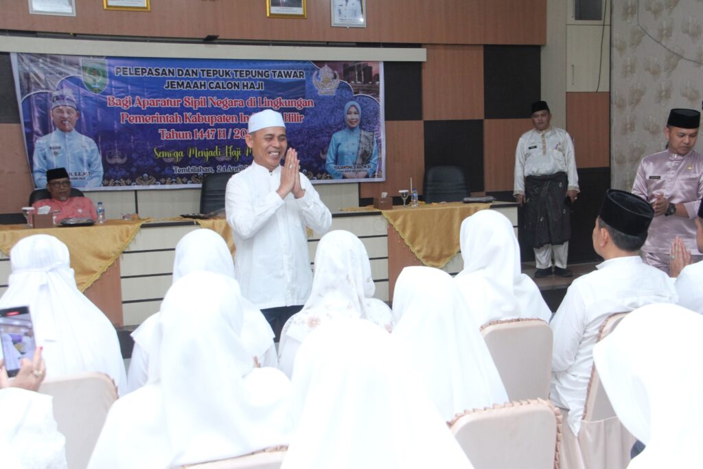 Bupati Indragiri Hilir, Herman, menggelar prosesi tepuk tepung tawar bagi Aparatur Sipil Negara (ASN) di lingkungan Pemerintah Kabupaten tersebut menjelang keberangkatan ke Tanah Suci. Kegiatan ini berlangsung di Aula Bapperida pada Jumat (24/4) dan dihadiri oleh Sekretaris Daerah, para staf ahli, asisten Setda, kepala OPD, serta para calon jemaah haji.