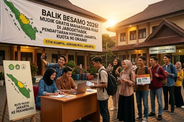Program Balek Besamo 2026 yang digelar oleh Pemerintah Provinsi Riau mendapat sambutan positif dari mahasiswa Riau di perantauan, khususnya di wilayah Jabodetabek. Kegiatan mudik bersama ini dinilai sangat membantu mahasiswa untuk pulang kampung menjelang Hari Raya Idulfitri 1447 H.
