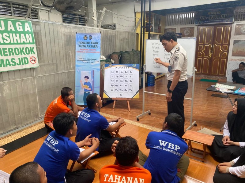 Lembaga Pemasyarakatan (Lapas) Kelas IIA Bagansiapiapi secara rutin melaksanakan kegiatan pembinaan bagi warga binaan dengan tajuk “Pengentasan Buta Aksara” melalui program belajar membaca. Kegiatan ini dilaksanakan setiap hari sebagai upaya meningkatkan kemampuan literasi warga binaan, khususnya bagi mereka yang belum mampu membaca. Program tersebut bertujuan agar warga binaan yang sebelumnya mengalami keterbatasan pendidikan dapat memperoleh keterampilan dasar membaca sebagai bekal positif untuk masa depan.