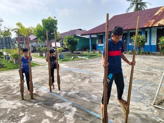 MTsN 3 Bengkalis Memperkenalkan Permainan Tradisional Enggrang kepada Siswa