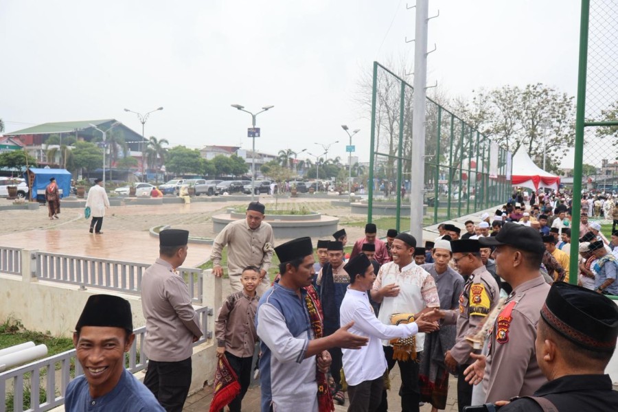 Kegiatan berakhir sekitar pukul 08.15 WIB dalam situasi aman dan kondusif. Kapolres Pelalawan bersama rombongan juga melakukan monitoring dan pengawasan untuk memastikan keamanan masyarakat tetap terjaga. Suasana khidmat dan penuh kebersamaan menyelimuti pelaksanaan Salat Idulfitri 1447 Hijriah di Lapangan Mini Soccer Pangkalan Kerinci. Ribuan masyarakat dari berbagai penjuru daerah memadati lokasi sejak pagi hari, menjadikan momen hari kemenangan ini terasa begitu istimewa. -mmd