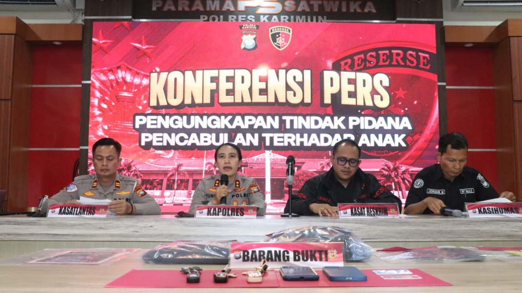 Dari korban, disita 1 unit HP Oppo A55, pakaian korban, uang tunai Rp100.000, dan hasil Visum Et Repertum. Tersangka TAS dijerat dengan Pasal 415 huruf b Undang-Undang Nomor 1 Tahun 2023 tentang Kitab Undang-Undang Hukum Pidana (KUHP) yang mengatur mengenai perbuatan cabul terhadap anak di bawah umur. “Setiap orang yang melakukan perbuatan cabul dengan seseorang yang diketahui atau patut diduga anak, diancam dengan pidana penjara maksimal 9 tahun,” ungkap Kapolres Karimun AKBP Yunita Stevani, S.I.K., M.Si dalam konferensi pers yang dihadiri juga oleh Kasat Reskrim AKP Denny Hartanto, S.I.K. dan Kasihumas AKP Jordan Manurung.