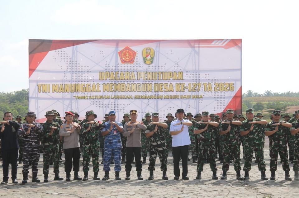 Program Tentara Manunggal Membangun Desa (TMMD) ke-127 Tahun 2026 yang dilaksanakan Kodim 0301/Pekanbaru resmi ditutup di Lapangan Upacara Kompleks Perkantoran Tenayan Raya, Jalan Abdul Rahman Hamid, Kelurahan Tuah Negeri, Kecamatan Tenayan Raya, Pekanbaru, Rabu (11/3/2026).