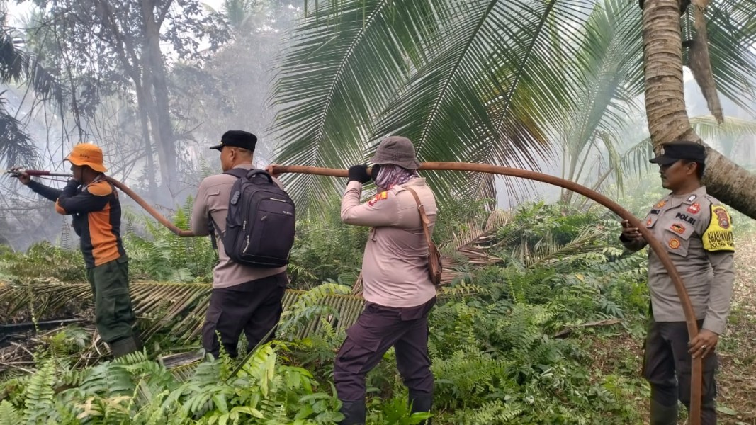 Personel Polsek Tempuling melaksanakan kegiatan pendinginan pada titik hotspot yang terpantau melalui aplikasi Dashboard Lancang Kuning, Jumat (6/3/2026) di Indragiri Hilir. Kegiatan tersebut dipimpin langsung oleh Kapolsek Tempuling IPTU Deni Atma Saputra, S.H., M.H. pada pukul 09.15 WIB di wilayah Tanjung Pasir II, Kelurahan Tanjung Pidada, Kecamatan Tempuling, Kabupaten Indragiri Hilir.