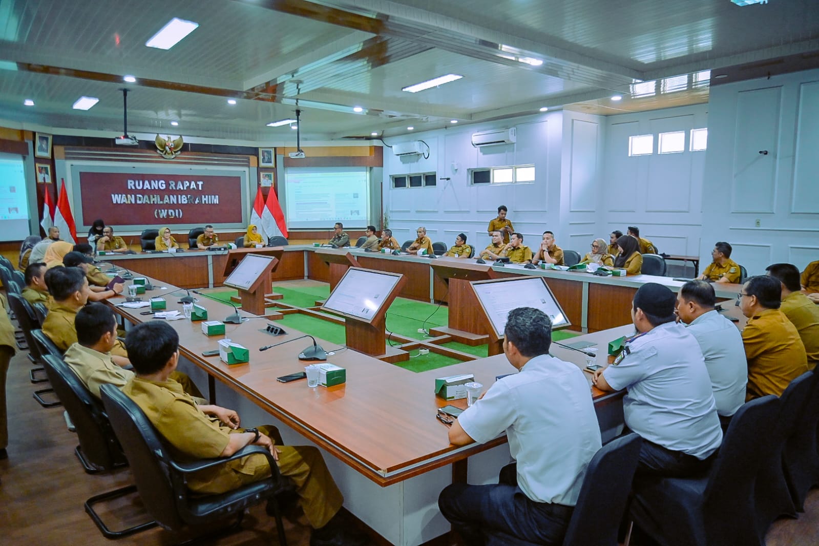 Sekretaris Daerah Kota Dumai, Fahmi Rizal, S.STP, M.Si, memimpin Rapat Koordinasi (Rakor) Pengawasan dan Penertiban Penyelenggaraan Reklame, Usaha Pertambangan, Jaringan Kabel Utilitas, hingga Hiburan Malam di Kota Dumai, pada Senin (9/2/2026). Rakor tersebut diselenggarakan oleh Dinas Penanaman Modal dan Pelayanan Terpadu Satu Pintu (DPMPTSP) Kota Dumai, di Ruang Rapat Wan Dahlan Ibrahim, dan dihadiri oleh Asisten Perekonomian dan Pembangunan Hj. Yusmanidar, S.Sos, M.Si, serta jajaran kepala perangkat daerah terkait dan para camat se-Kota Dumai.