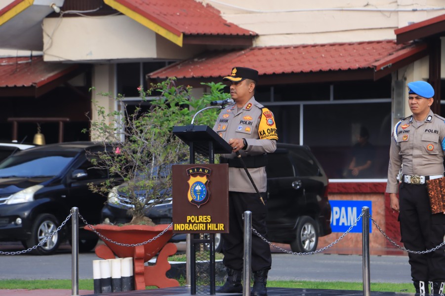 Polres Indragiri Hilir melaksanakan Upacara Pemberhentian Tidak Dengan Hormat (PTDH) terhadap tujuh personel, pada Kamis (12/02/2026) sekira pukul 07.30 WIB hingga selesai, bertempat di Halaman Mapolres Indragiri Hilir. Upacara tersebut dipimpin langsung oleh Kapolres Indragiri Hilir, AKBP Farouk Oktora, S.H., S.I.K., dan dihadiri oleh Wakapolres Indragiri Hilir Kompol Maitertika, S.H., M.H., para Kabag, Kasat, Kasi, perwira, bintara serta ASN Polres Indragiri Hilir.