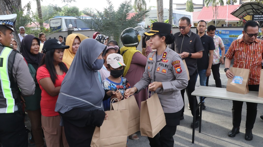 Sebanyak 500 paket takjil dibagikan kepada masyarakat dan pengguna jalan yang melintas menjelang waktu berbuka puasa. Kegiatan ini merupakan wujud nyata kepedulian Polri terhadap masyarakat, khususnya di bulan penuh berkah. Kapolres Karimun, AKBP Yunita Stevani menyampaikan bahwa kegiatan berbagi takjil ini merupakan agenda rutin Polres Karimun selama Bulan Suci Ramadhan sebagai bentuk empati dan kebersamaan dengan masyarakat.