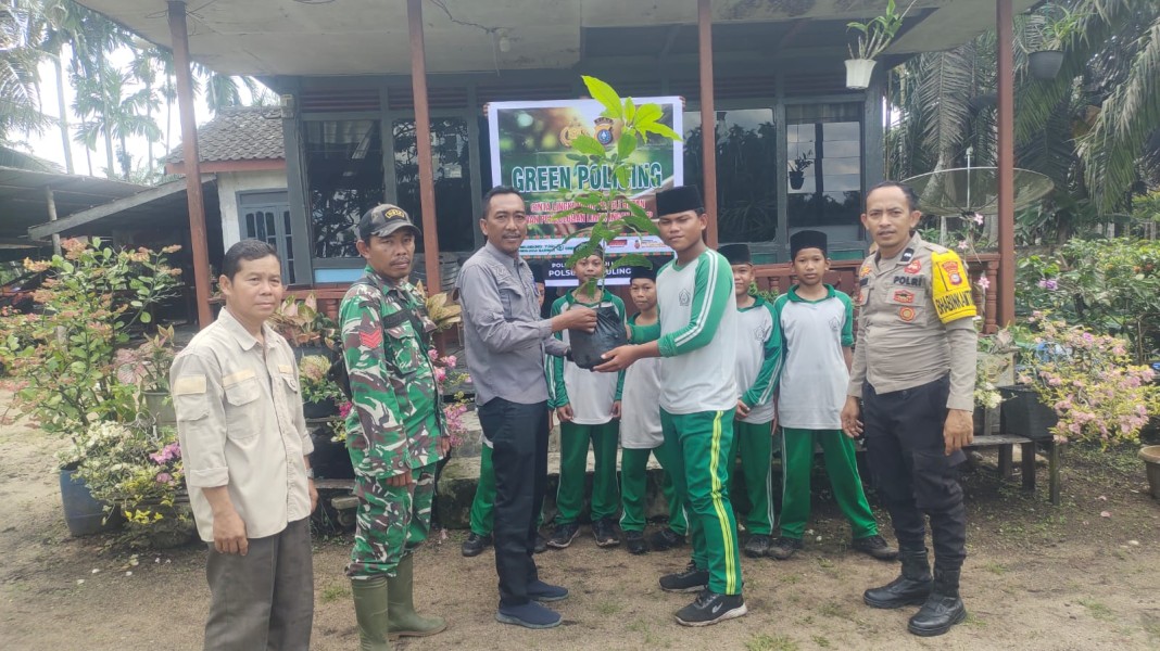 What: Dalam rangka mendukung program Kapolda Riau tentang Green Policing serta menanamkan kecintaan terhadap lingkungan hidup sejak usia dini, jajaran Polsek Tempuling melaksanakan kegiatan penyuluhan dan penanaman pohon di wilayah Desa Harapan Jaya, Kecamatan Tempuling.