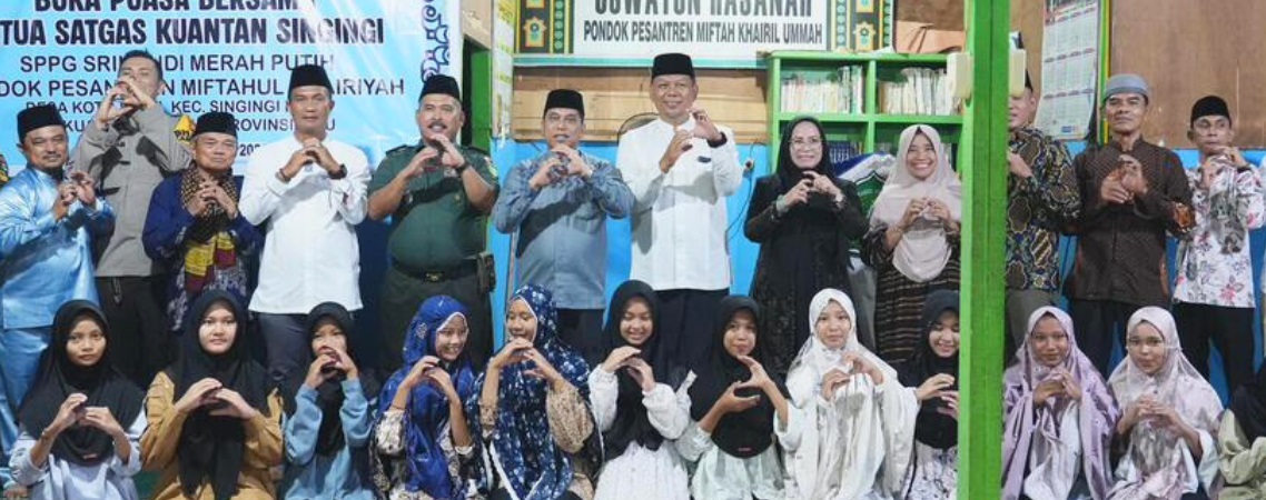 Sekretaris Daerah Kabupaten Kuantan Singingi, Zulkarnain, ST, MT, mewakili Bupati Kuantan Singingi menghadiri kegiatan buka puasa bersama Santri Pondok Pesantren Miftahul Khairiyah dan Ketua Yayasan Mutiara Inshani SPPG Srikandi Merah Putih di Desa Koto Baru, Selasa (24/2/2026).