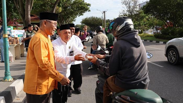 Pekanbaru – Teras Zakat dan Wakaf (TerasZAWA), hasil kolaborasi Kementerian Agama Provinsi Riau, BAZNAS Provinsi Riau, dan Forum Organisasi Zakat Riau, telah menyalurkan 1.030 paket takjil kepada masyarakat pada hari ke-9 Ramadan 1447 Hijriah, Jumat (27/2/2026). Pembagian takjil dilakukan di Jalan Jenderal Sudirman, tepat di depan Kantor Wilayah Kementerian Agama Provinsi Riau, dan diserahkan langsung kepada para pengguna jalan. Kegiatan ini melibatkan tokoh lintas agama sebagai simbol harmonisasi antarumat beragama serta kepedulian sosial di bulan suci Ramadan.