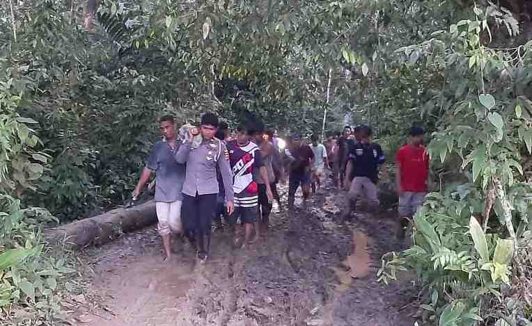 Personel Polsek Pangkalan, bersama perangkat nagari dan warga setempat, menempuh jalur setapak sekitar dua kilometer untuk mencapai lokasi kejadian. Jenazah korban dievakuasi menggunakan tandu manual sebelum dibawa ke Puskesmas Pangkalan. Hasil pemeriksaan medis menunjukkan bahwa korban mengalami luka robek di dagu dan memar di dada. Keluarga korban dari Desa Lubuk Jering, Riau, telah menerima kejadian tersebut sebagai musibah dan menolak dilakukan autopsi, serta menandatangani surat pernyataan tidak menuntut pihak manapun.