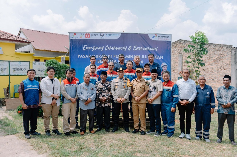 Wakil Bupati Rokan Hilir, Jhony Charles, bersama Kapolres Isa Imam Syahroni menghadiri kegiatan Pasar Murah Ramadan yang diinisiasi oleh PT Pertamina Hulu Rokan (PHR) bersama mitra kerja di depan Kantor Kepenghuluan Bangko Permata, Kecamatan Bangko Pusako, pada Kamis (12/3/2026).